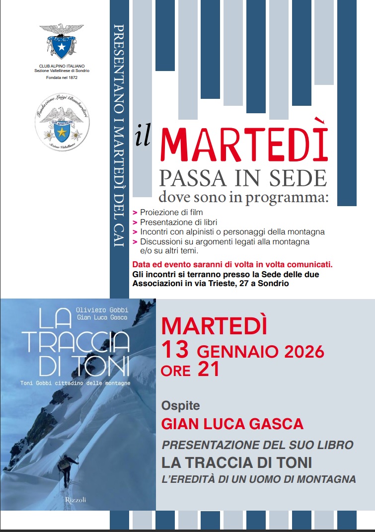Ore 21, presso sede Sezione Valtellinese di Sondrio, Via Trieste 27 a Sondrio